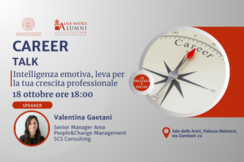 It is with this objective in mind that we present the Professional Development initiatives organised by the Almae Matris Alumni Association and the Job Placement Unit of the Alma Mater Studiorum - Università di Bologna.