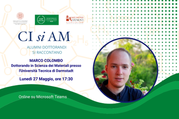 Il ciclo di incontri 2024 dedicati agli studenti PHD. Guest speaker sarà l'Alumno Marco Colombo, Dottorando in Scienza dei Materiali presso l'Università Tecnica di Darmstadt.