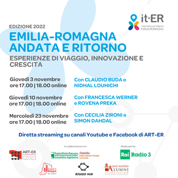 Gli incontri online vedranno come protagonisti talenti emiliano-romagnoli che hanno vissuto o stanno vivendo importanti esperienze “lontano”, senza perdere il legame con la loro città e internazionali che fanno ricerca o lavorano in Emilia-Romagna.