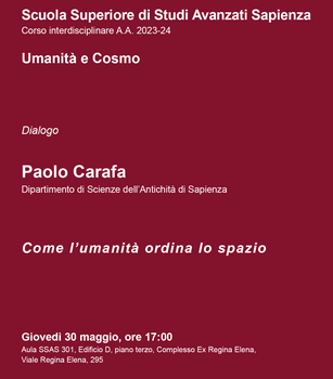 Giovedì 30 maggio alle 17:00 si terrà in presenza a Roma l'incontro organizzato dalla Scuola Superiore di Studi Avanzati - Sapienza
