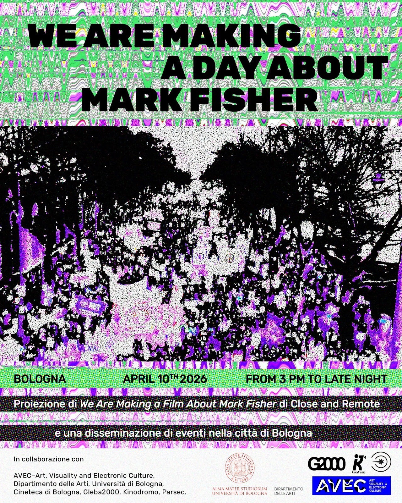 Una giornata di appuntamenti disseminati per la città dedicata a Mark Fisher e alla persistenza del suo pensiero. Il programma si costruisce attorno alla proiezione di We Are Making a Film About Mark Fisher (65’) di Close and Remote e si sviluppa attraverso una serie di eventi correlati.
